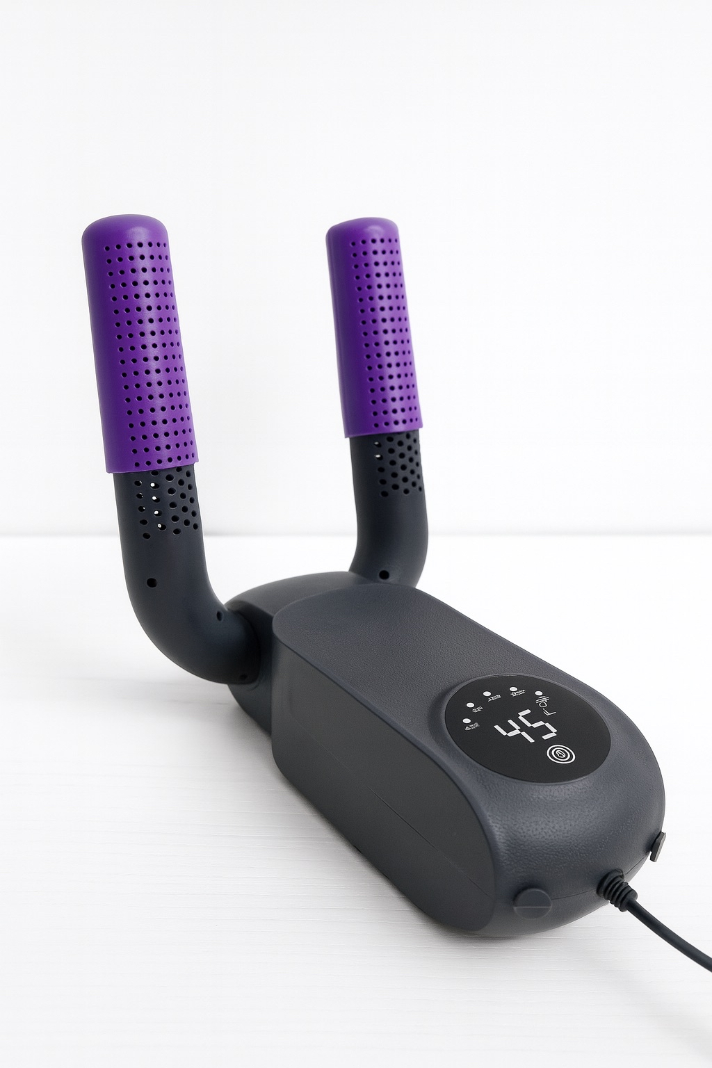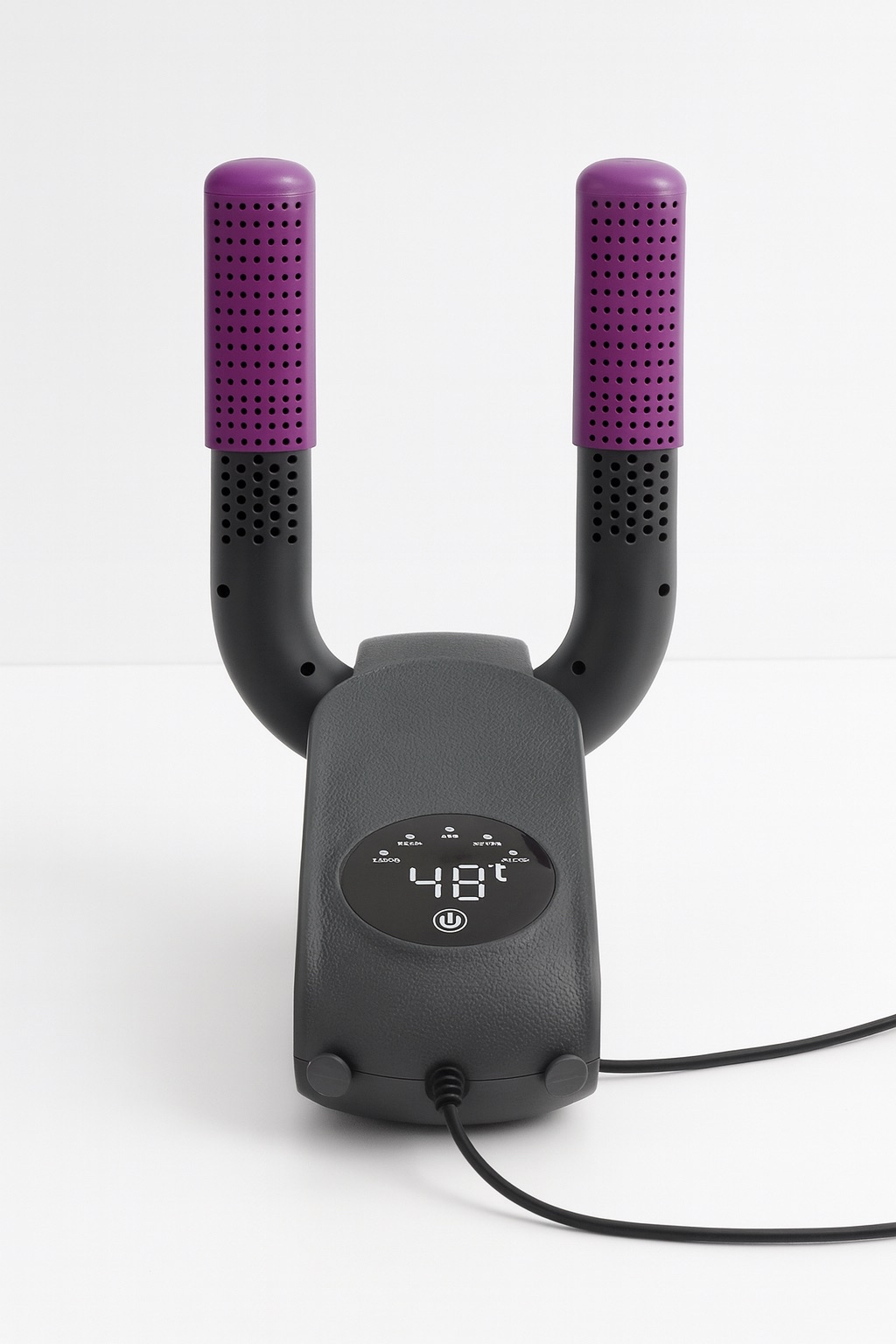 Specjalnie zaprojektowane dysze wylotowe zapewniają intensywny, ale bezpieczny strumień ciepła, który wnika głęboko w buty i skutecznie usuwa wilgoć w krótkim czasie. Stała temperatura chroni materiał i nie powoduje przegrzania.